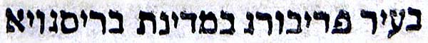be'ir Friburg bimedinat Brisgoj' = in der Stadt Freiburg in der Provinz Breisgau
